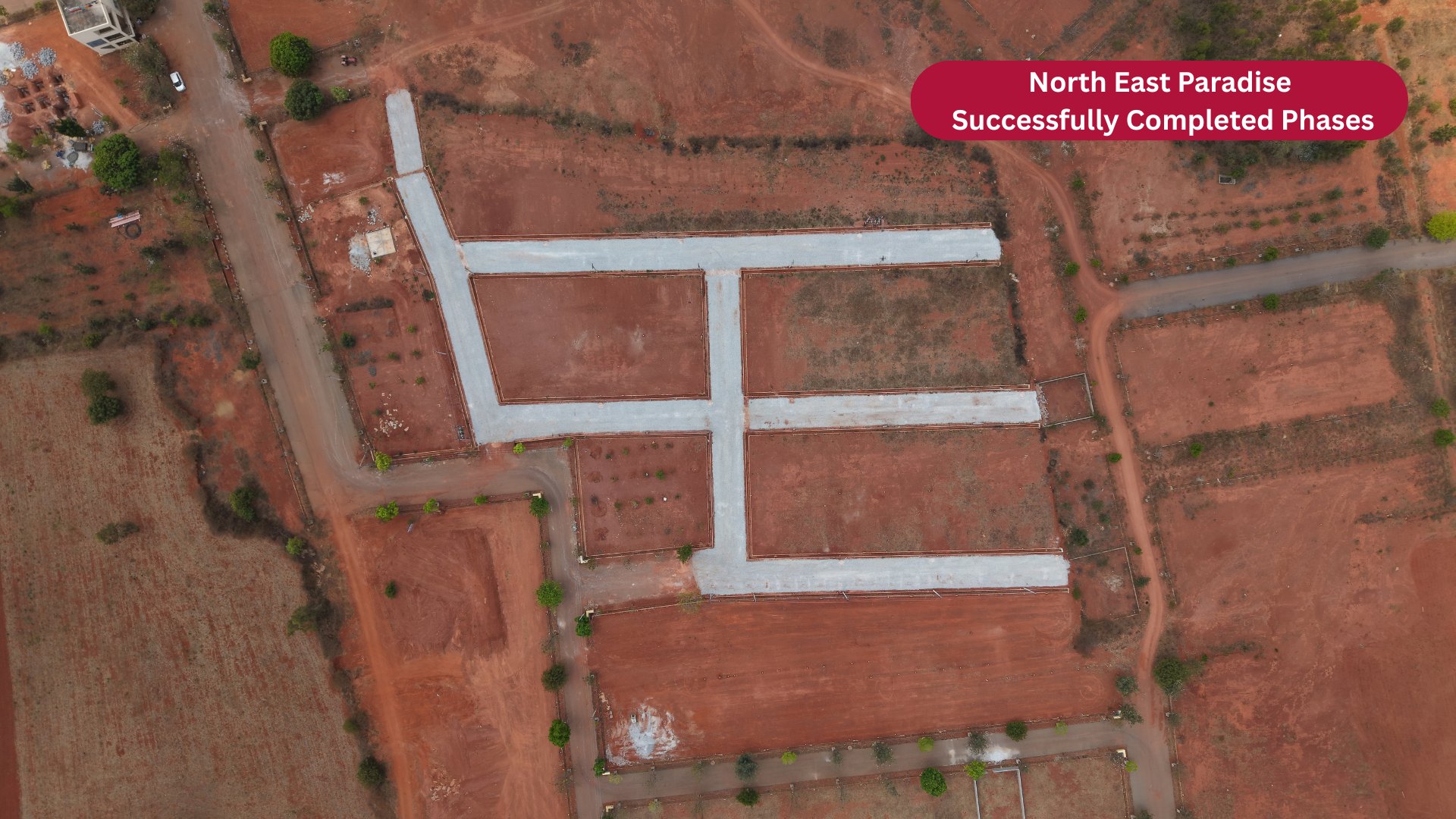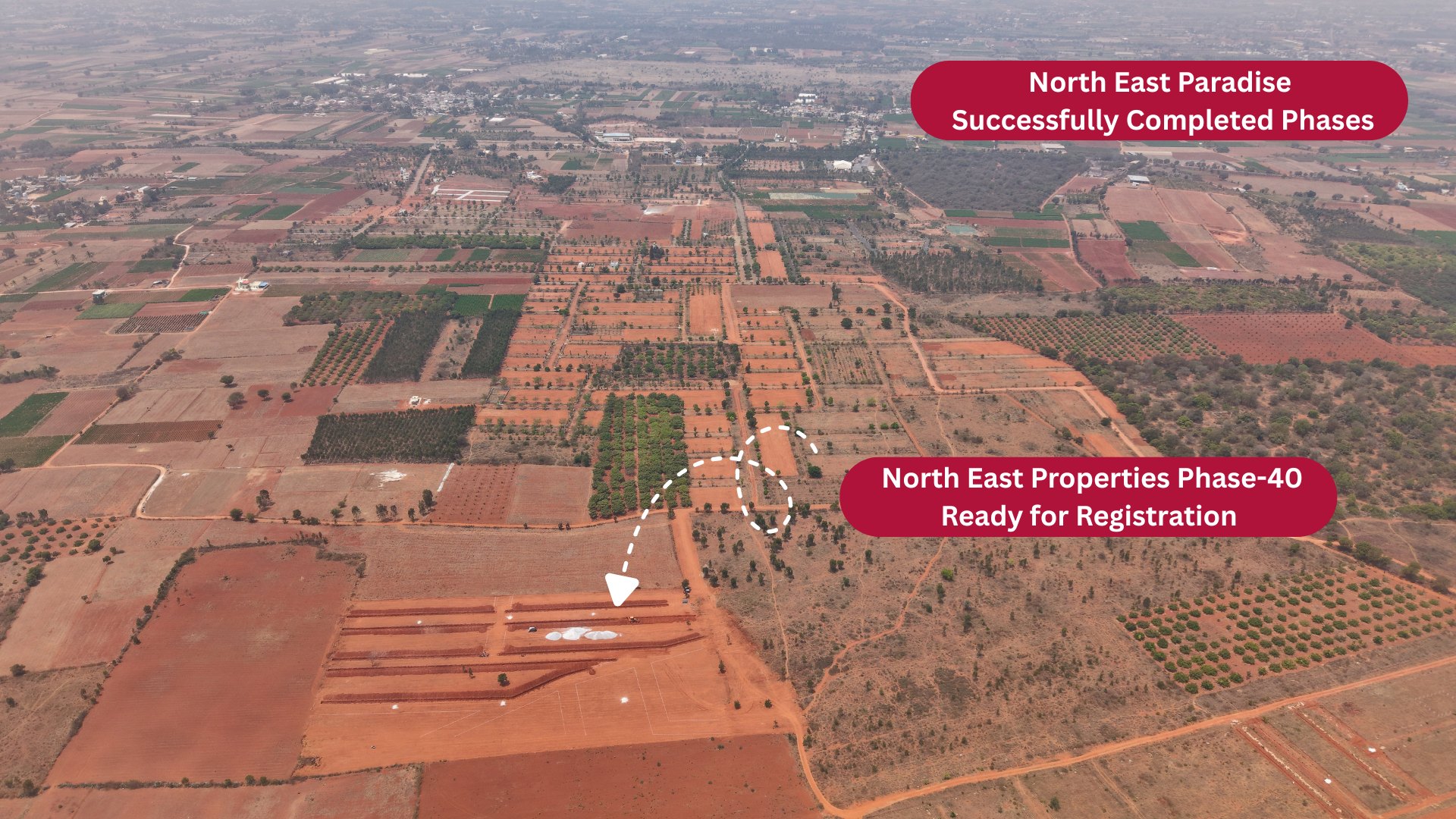 North East Paradise is a landmark plotted development spread across 350+ acres in Bodhguru, Hithalahalli, and Japtihosahalli, Sidlaghatta Taluk. Developed as a large-scale residential township, the project has been thoughtfully planned across multiple phases, making it one of the most expansive and trusted plotted developments in the region.